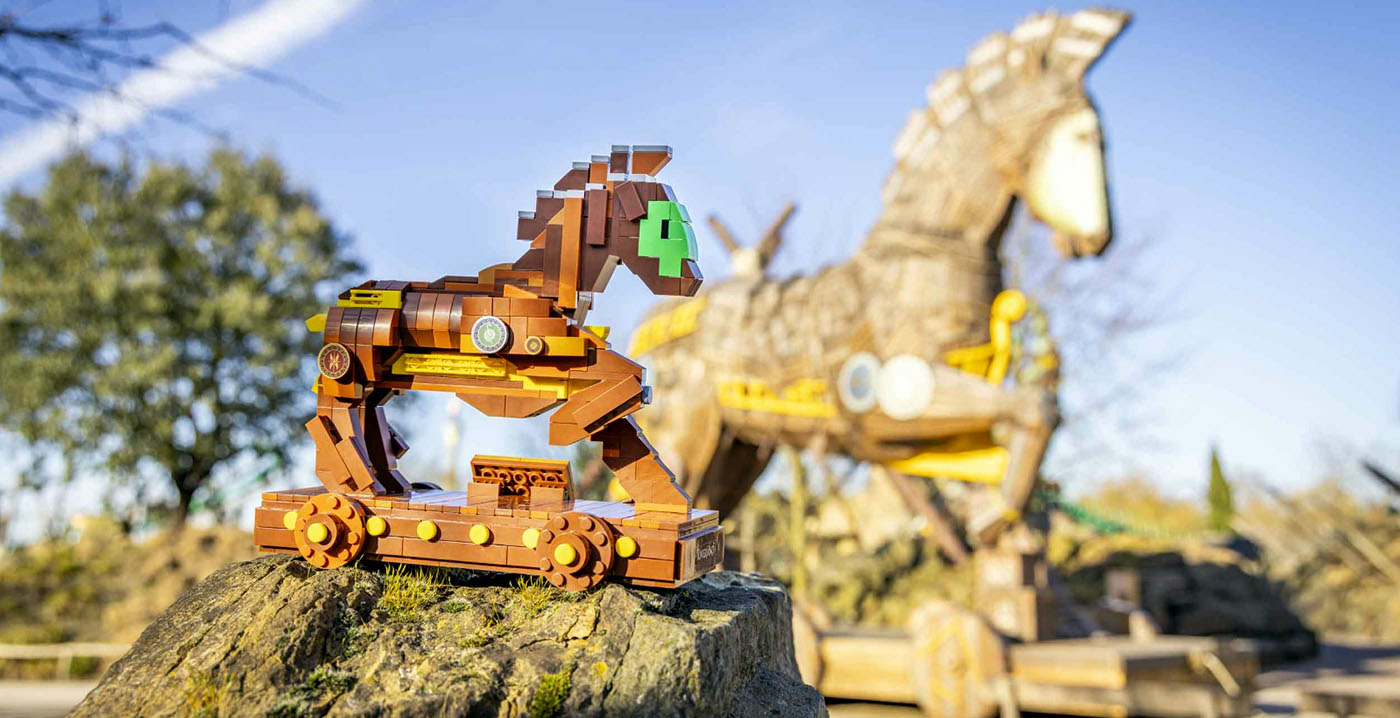 Daarnaast bevat de set een stuk baan en een deel van de houten constructie. De tweede set staat in het teken van het Paard van Troje, een herkenbaar bouwwerk bij de ingang van de attractie. Het 20 centimeter hoge model, met 587 onderdelen, bevat details zoals schilden en een naambord.