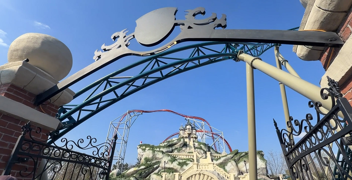 Bovenop de rots staat een statig landhuis. Dankzij forced perspective lijkt het bouwwerk groter dan het in werkelijkheid is. Er zijn drie treinen, waarvan er tijdens de opening twee operationeel waren. Ze zijn paars, met aan de voorzijde een wolvenkop. Daarbovenop staat een wit-roze poedel.
