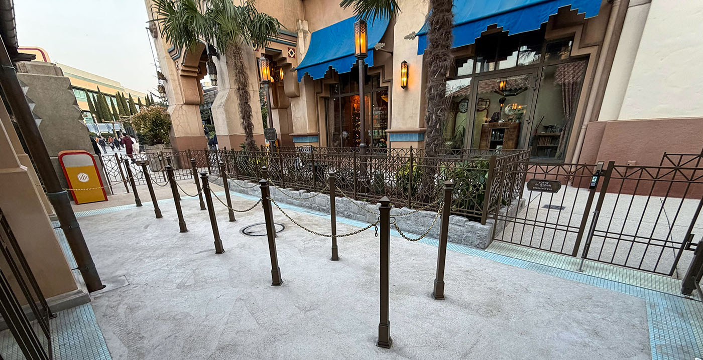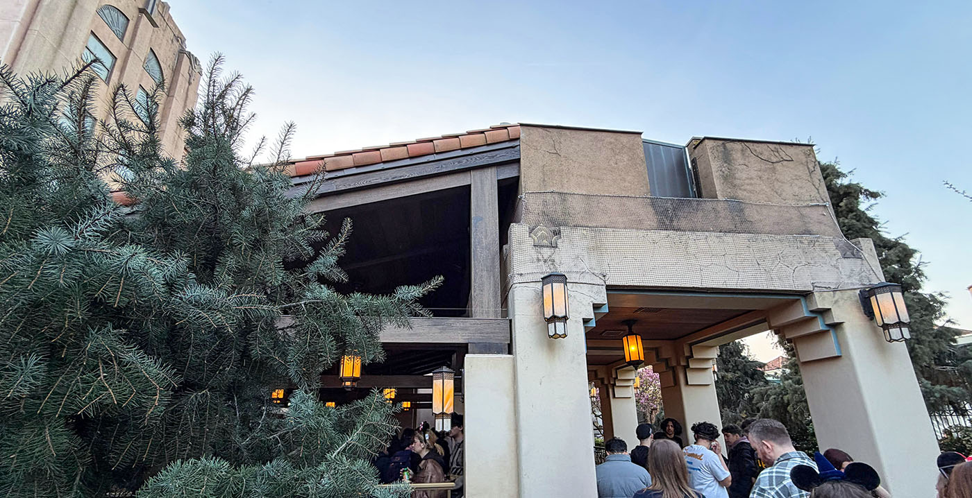 De overkapping maakt deel uit van een grotere investering in beschutte plekken in het resort. Bij Tower of Terror is gekozen voor een thematische aanpak: de wachtrij is ingericht als een voormalige patio van het fictieve hotel, ooit een luxe ontmoetingsplek voor rijke gasten.