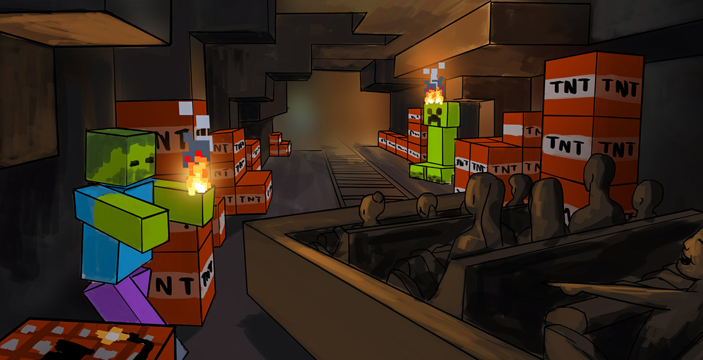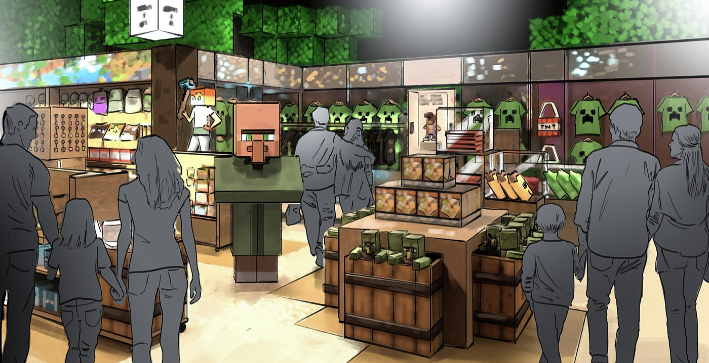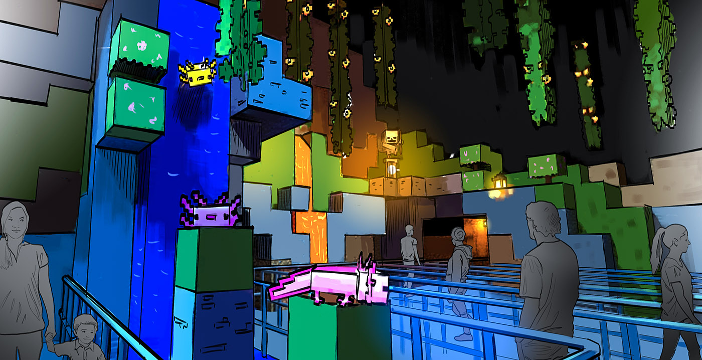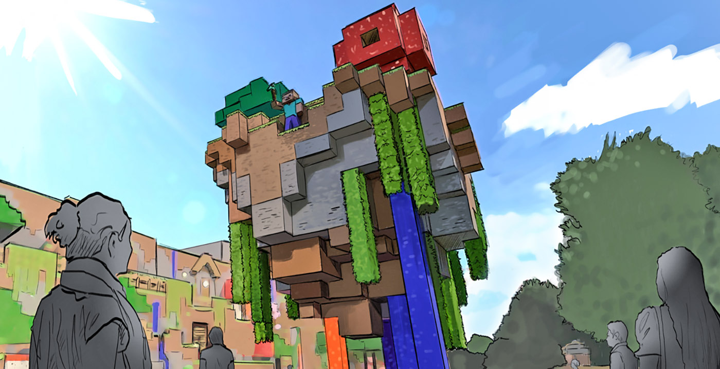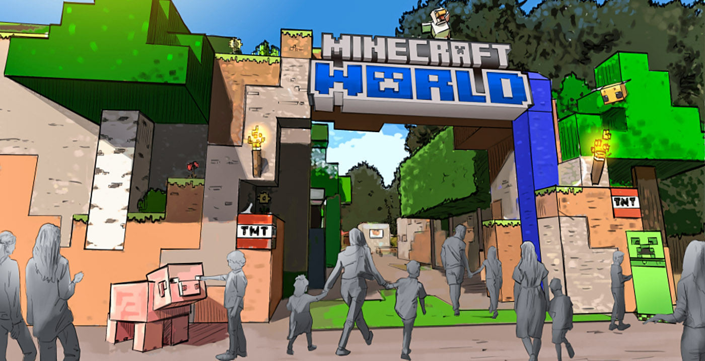 Eerste ontwerpen onthuld: Minecraft-themawereld met achtbaan en megawinkel