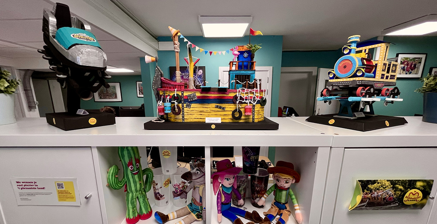 Bobbejaanland-medewerker bouwt attracties na van karton en stelt ze tentoon in het park