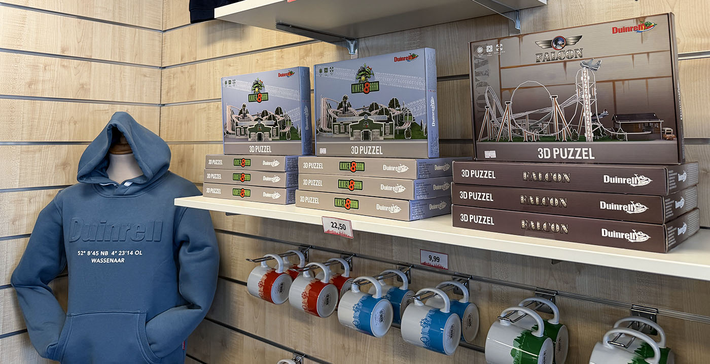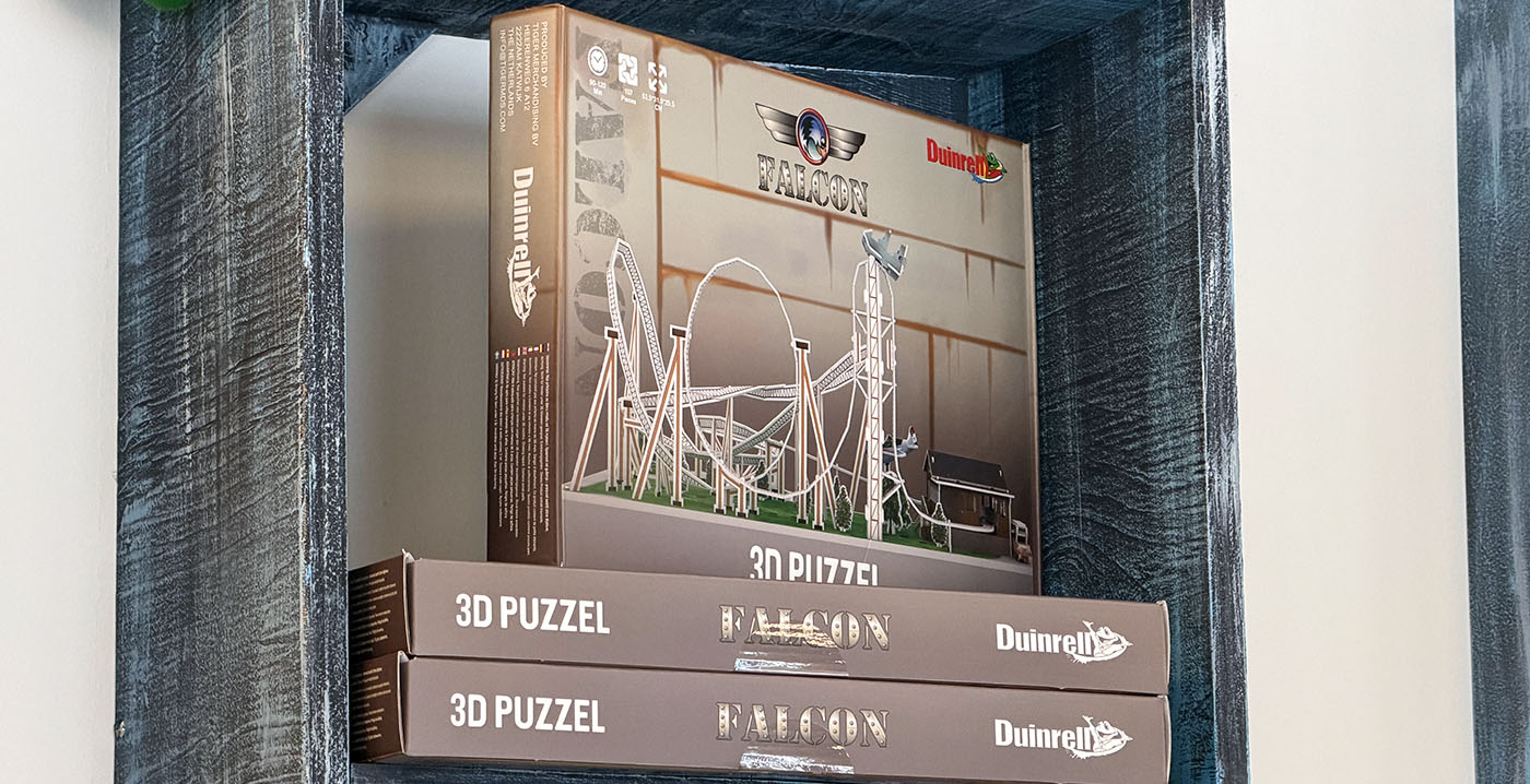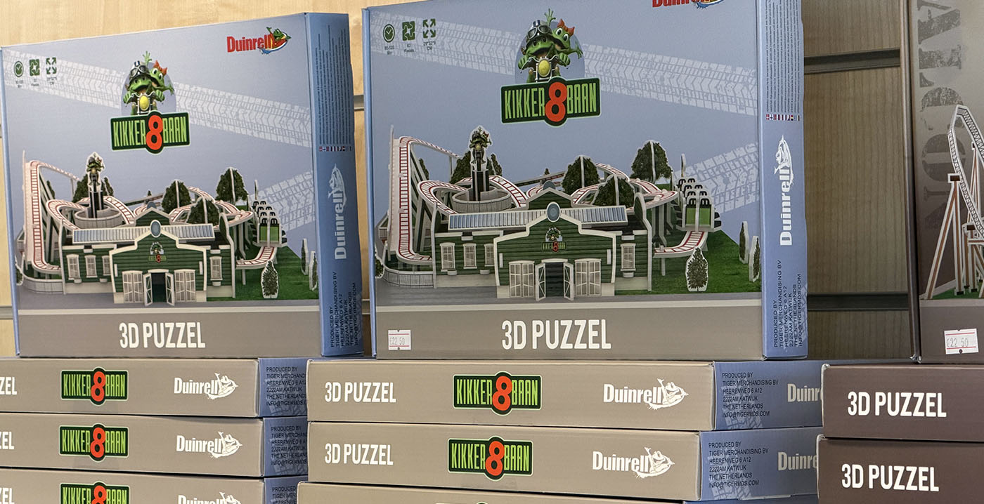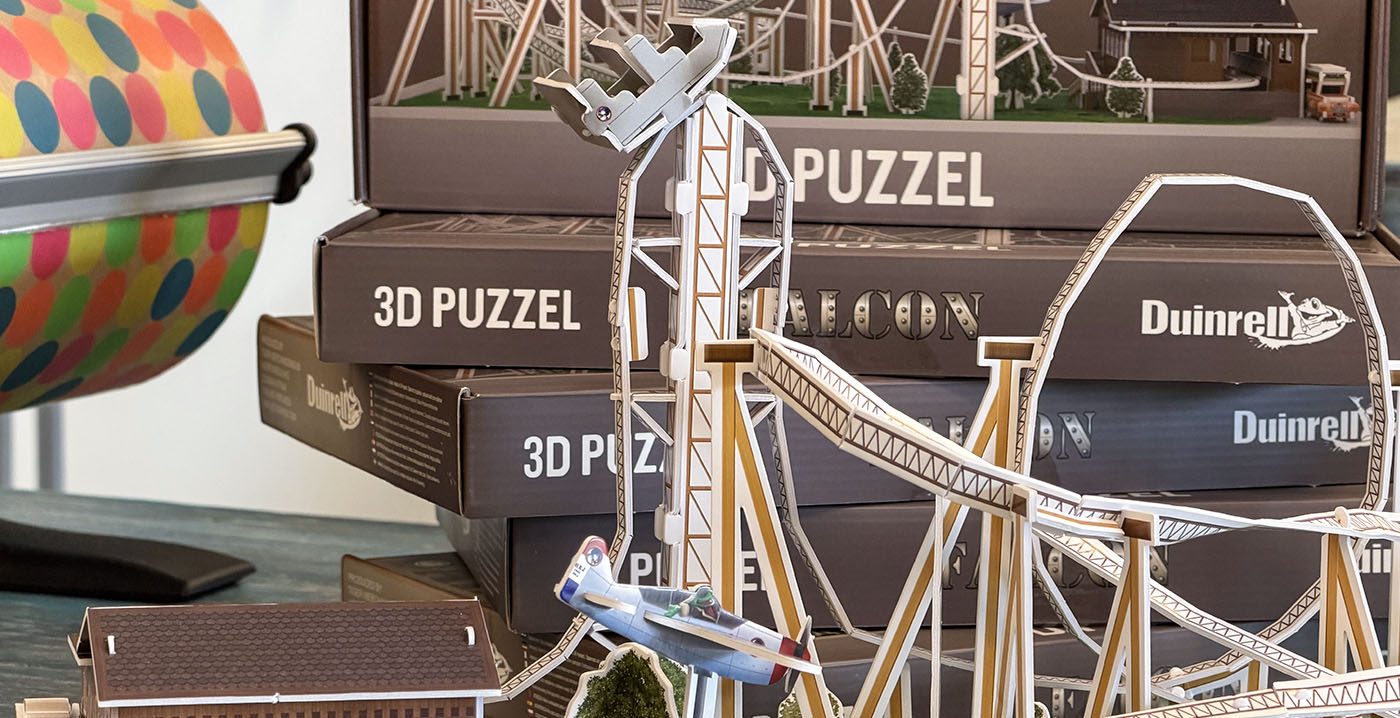 FOTO'S Dankzij nieuwe souvenirs in Duinrell kunnen bezoekers zelf attracties in elkaar knutselen. Het Wassenaarse pretpark verkoopt sinds kort 3D-puzzels gebaseerd op attracties. Op dit moment liggen twee varianten in de schappen. Het gaat om miniatuurversies van de Kikker8baan en de rollercoaster Falcon.