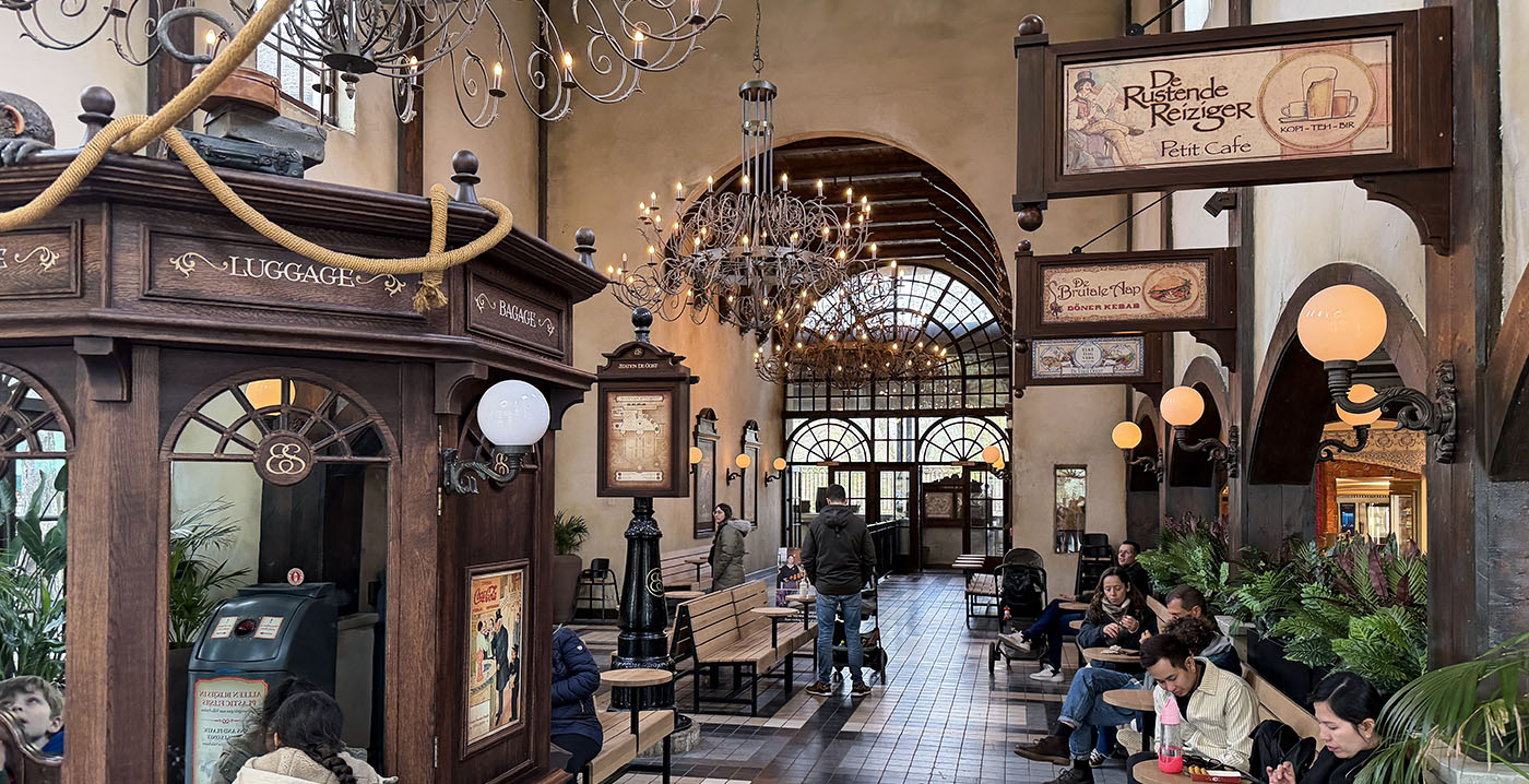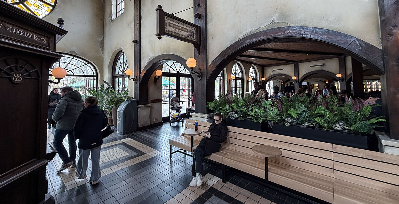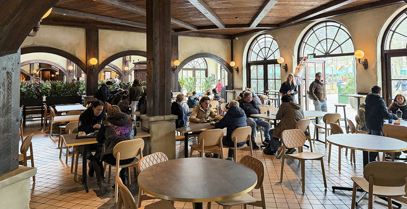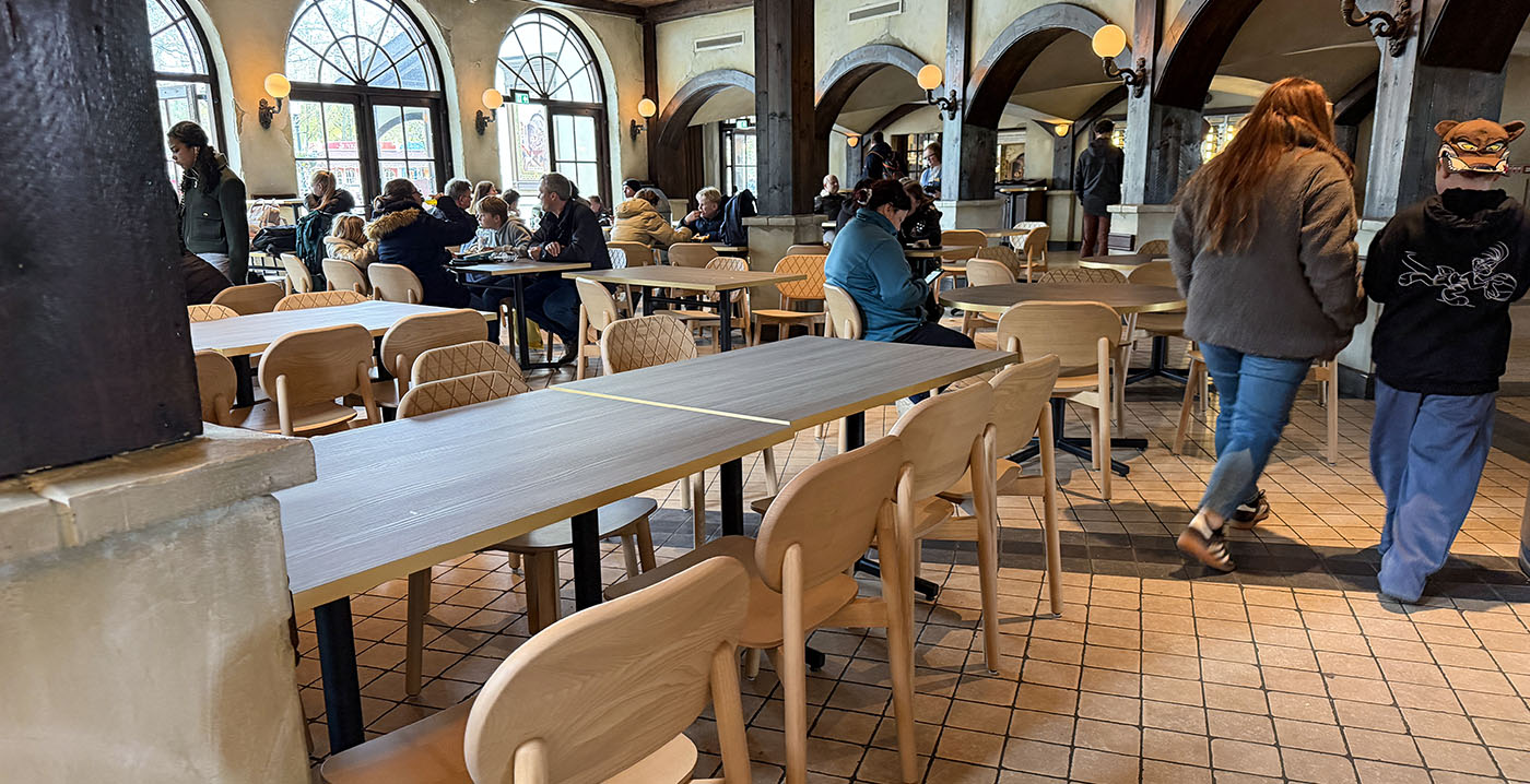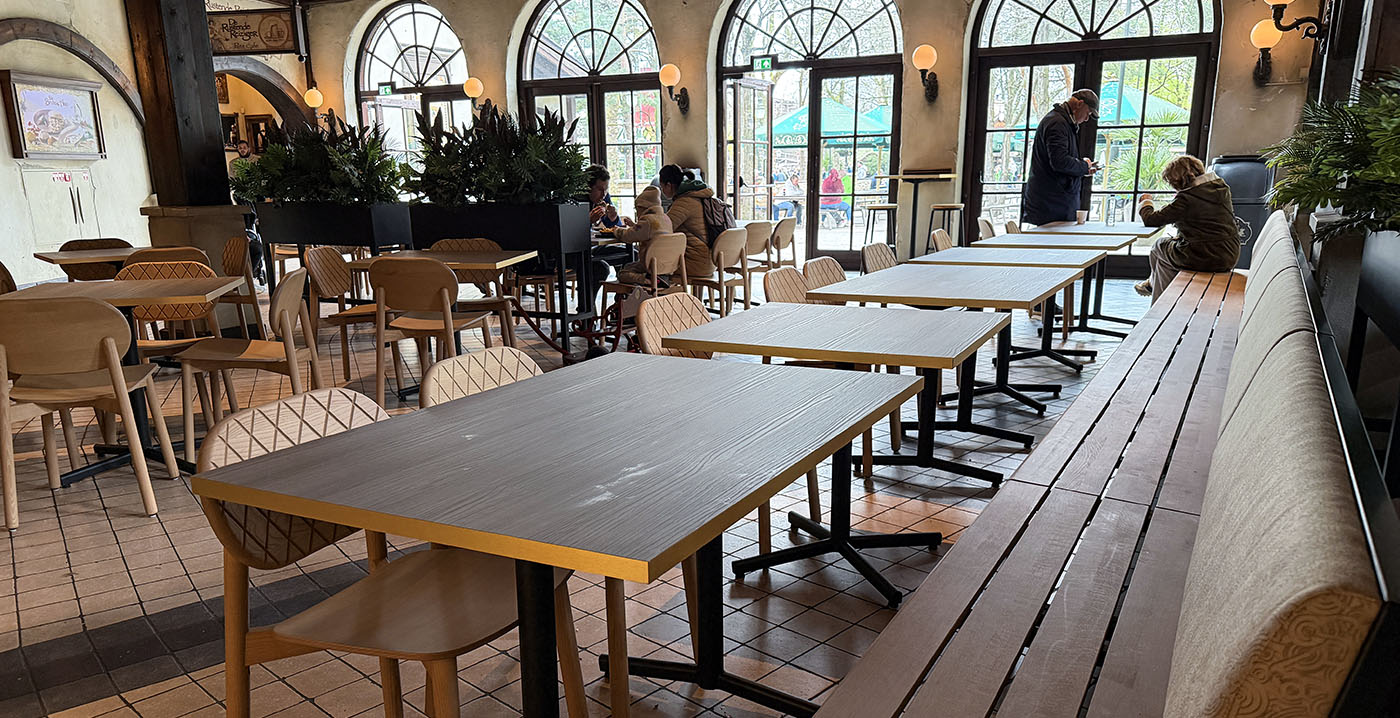 FOTO'S De Efteling heeft het interieur van een groot horecacomplex vernieuwd. In Station de Oost, gelegen in parkdeel Ruigrijk, is sinds afgelopen week nieuw meubilair te vinden. Hoewel het gebouw een Indonesische uitstraling moet hebben, werd gekozen voor modern meubilair met industriële invloeden.