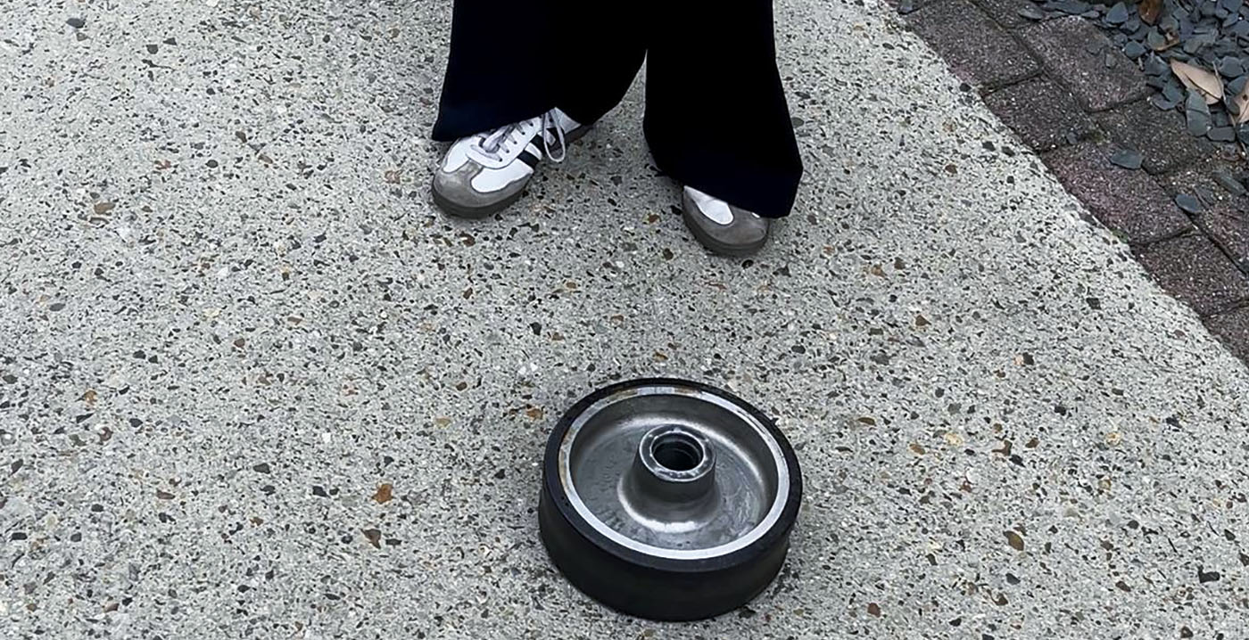 Te zien is hoe het onderdeel in de verte losraakt en door de lucht vliegt bij één van de zeven inversies van de loopingachtbaan. Ooggetuigen melden dat het wiel vervolgens in de wachtrij terechtkwam. Als de trein even later langs de camera rijdt, lijkt er inderdaad een wiel te ontbreken.