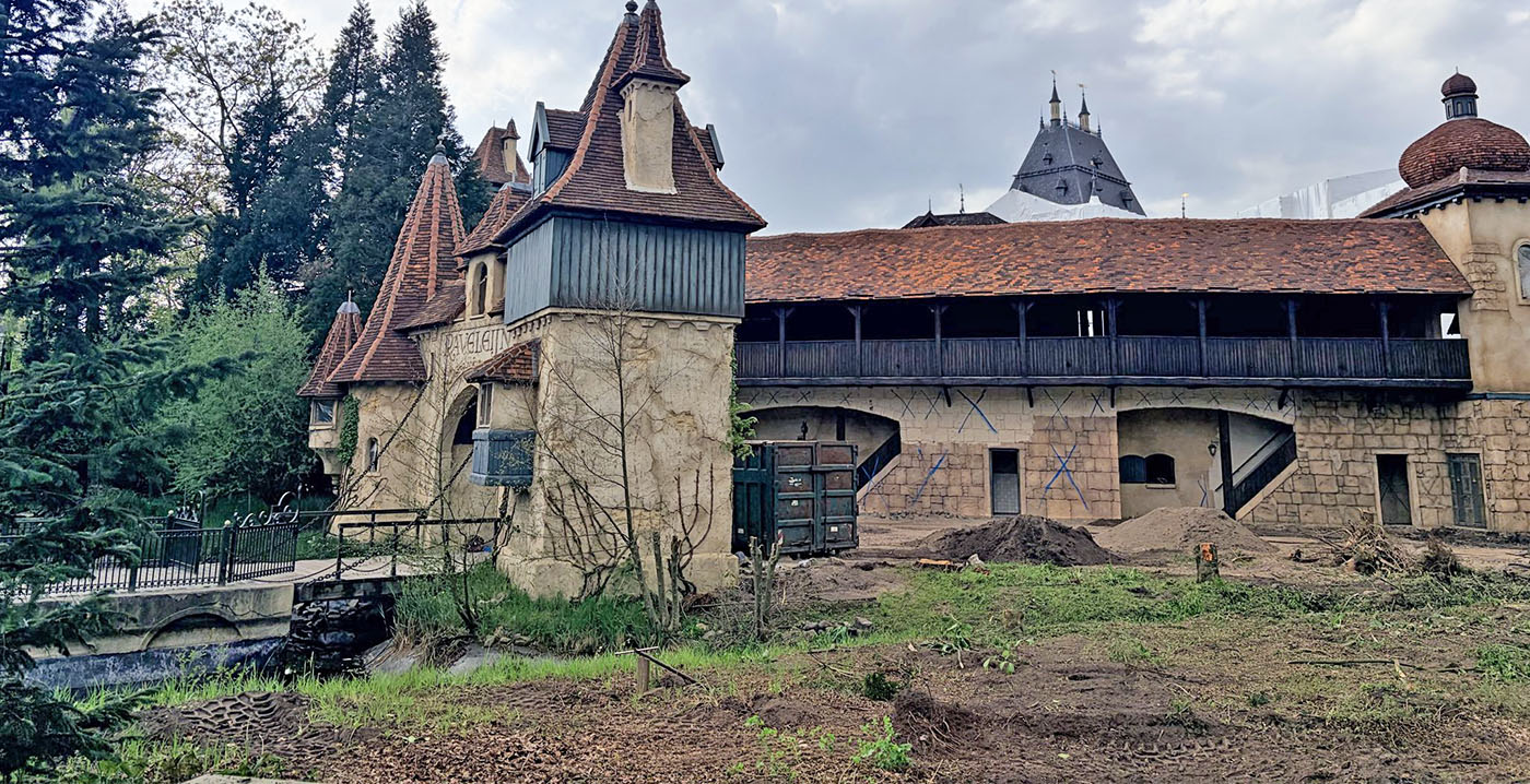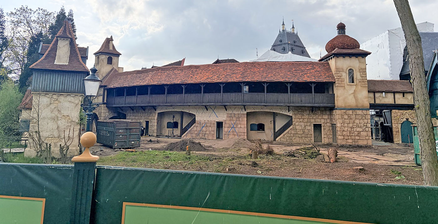 Even verderop, bij restaurant Het Wapen van Raveleijn, is het waterrad verwijderd. Het decor van de showarena staat voor een deel in de steigers, voorzien van krimpfolie. De Efteling heeft nog maar weinig bekendgemaakt over de attractie die gebouwd wordt tussen Villa Volta en de tribune.