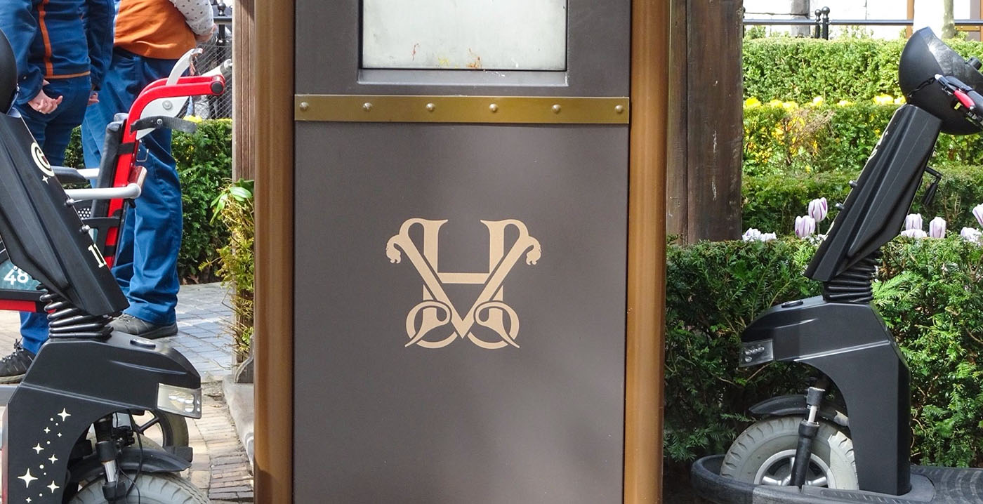 Het oude logo, met de letters VHE, doet sterk denken aan het symbool van de Verenigde Oost-Indische Compagnie (VOC). Op recente foto's is te zien dat de prullenbakken zijn voorzien van het aangepaste embleem: een sierlijke combinatie van de letters V en H.