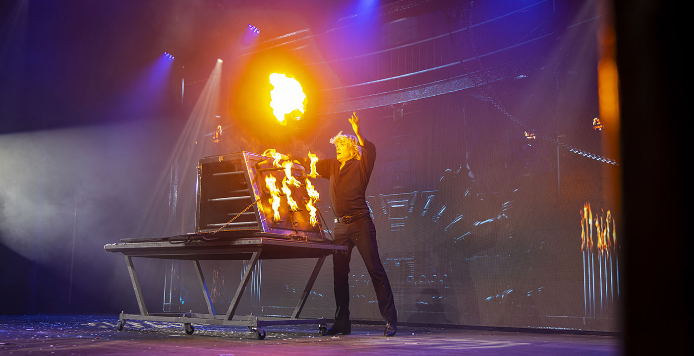 FOTO'S Een magische tijdreis vol illusies. Zo omschrijft Toverland een nieuwe spektakelshow met illusionist Hans Klok, die de komende maanden te zien is in de weekenden en op feestdagen. De titel luidt Hans Klok: Magic Memories. Een fotoreportage laat zien wat je van de voorstelling kunt verwachten.