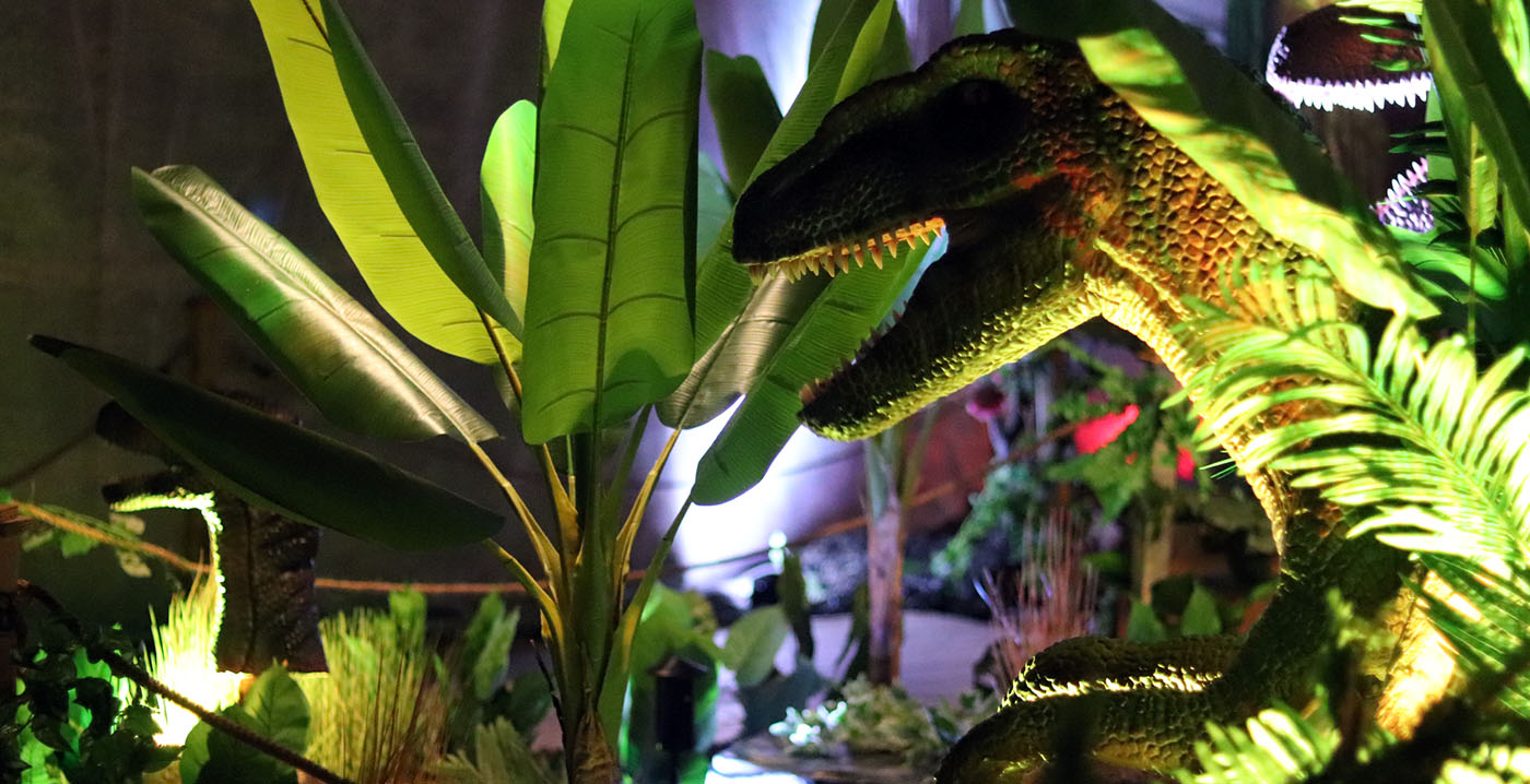 De organisatie richtte het oude casinogebouw volledig opnieuw in, met decors en effecten die het dinotijdperk moeten verbeelden. "Waar ooit pokertafels en gokautomaten zorgden voor vermaak, lopen nu immense dinosaurussen rond", zegt een woordvoerster.