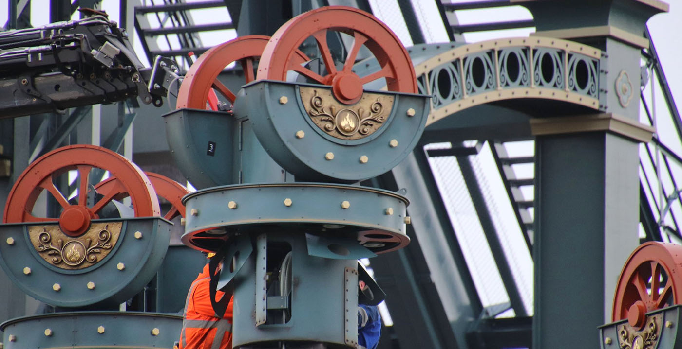 Vinger medewerkster tussen gondel van Ocean of Darkness.
